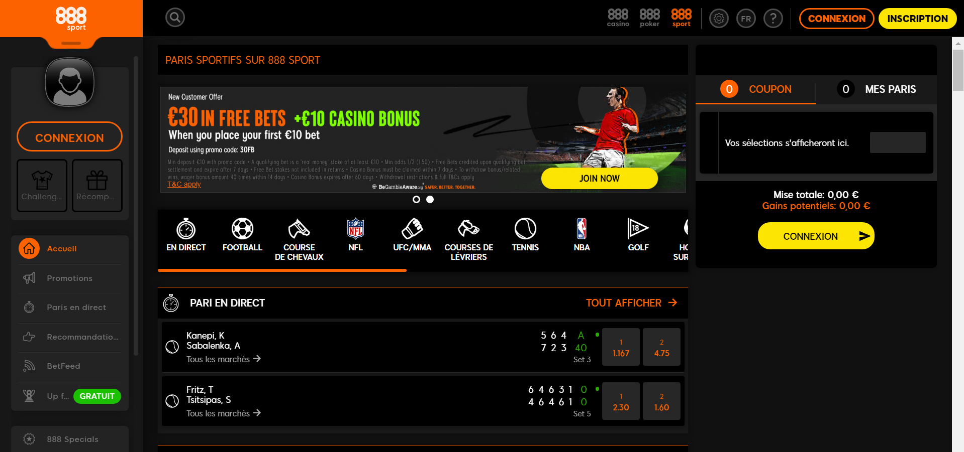 888.comは、ブックメーカーが安全であるのと同じくらい魅力的な取引のみを提供するため、通常のオンラインギャンブラーに非常に人気があります。ベッティングプレイヤーが常に交渉以上のものを得ることを可能にする様々なプロモーションに加えて、このプラットフォームは、その特権的なメンバーの匿名性とすべてのトランザクションのセキュリティを保証します。その簡単な支払い方法により、メンバーはもはや入金することはおろか、賞金を取り戻すために時間を無駄にする必要もありません。数回クリックするだけで、888.com が全てを行います。